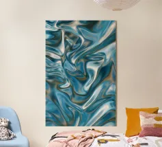 Questo poster mostra un vortice organico di superfici metalliche lucide nei colori blu, verde e argento, come uno specchio liquido della natura. La struttura astratta ha un aspetto digitale, organico e lussuoso allo stesso tempo. Perfetto per gli interni moderni, gli amanti del design e tutti coloro che apprezzano i riflessi artistici in movimento.