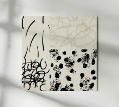 Collage/mista su carta Whenzou. Celebra la bellezza dell'imperfetto. Segni ritmici, forme e texture si combinano armoniosamente per creare uno schema di colori ridotto in toni naturali.
