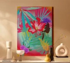 profilo di una donna in un giardino tropicale