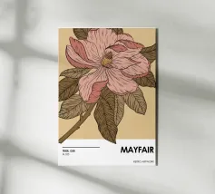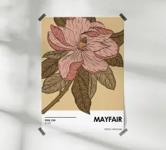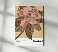 Descrizione del prodotto: Un design elegante e raffinato, caratterizzato da un grande fiore dettagliato nei toni tenui del rosa e del beige. Gli elementi floreali sono completati da un preciso lavoro di linee e da sottili sfumature di colore, creando un look senza tempo di ispirazione retrò. Lo sfondo in un caldo beige neutro sottolinea le forme organiche e conferisce al motivo un equilibrio armonioso. Il bordo inferiore presenta scritte stilizzate come "MAYFAIR", che aggiungono un tocco moderno e minimalista all'opera d'arte.