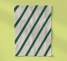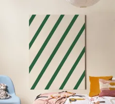 Un motivo minimalista di linee diagonali verde intenso su uno sfondo morbido e caldo color crema. La spaziatura equilibrata e il ritmo costante creano un senso di ordine, calma e tranquilla sicurezza. Pulito e senza tempo, questo disegno si adatta perfettamente a interni moderni, scandinavi e contemporanei, aggiungendo struttura senza sovraccaricare lo spazio.