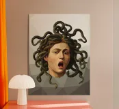 Medusa (Style Lowpoly) inspiration from the painting by Michelangelo Merisi da Caravaggio 1597 Two versions of Medusa were created by the Italian Baroque painter Michelangelo Merisi da Caravaggio, one in 1596 and the other in ca. 1597. Both depict the moment from Greek mythology in which the Gorgon Medusa is killed by the demigod Perseus, but the Medusas are also self-portraits. Due to its bizarre and intricate design, the painting is said to display Caravaggio's unique fascination with violence and realism.