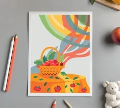 Questo disegno colorato presenta mele disegnate nei minimi dettagli, catturando la freschezza e la naturalezza del frutto.