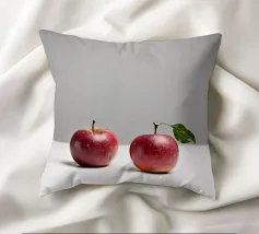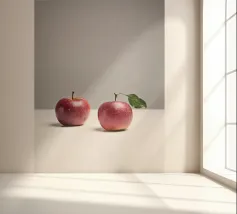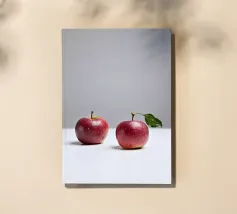 Fotografia - Mele rosse su sfondo bianco e davanti a una parete grigia.