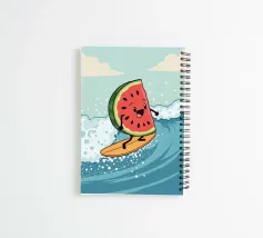 Una fetta di anguria che fa surf su un'onda