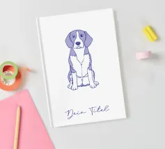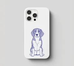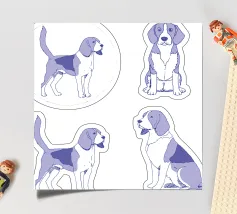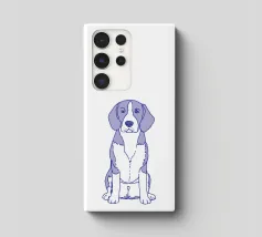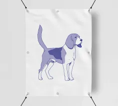 Disegno al tratto blu di un beagle. Il motivo del cane è più adatto su sfondi molto chiari.