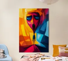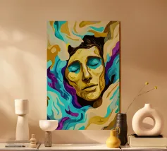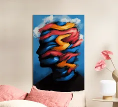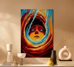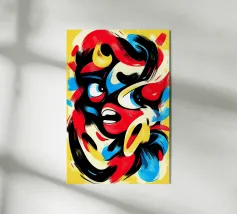 Un momento intenso di liberazione o di follia: questa opera espressiva mostra un volto che esplode di energia, emozione e caos. I tratti dinamici e vibranti di colore che fuoriescono dalla testa simboleggiano l'esplosione creativa, il dolore o l'illuminazione. L'espressione drammatica e lo stile pittorico audace catturano lo sguardo dell'osservatore e invitano all'interpretazione. Un'opera di grande effetto per gli amanti dell'arte moderna e astratta.
