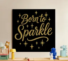 Messaggio "Born to sparkle" (nato per brillare) in lettere d'argento lucido plexiglass