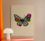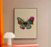 Questa elegante illustrazione di una farfalla cattura la natura delicata della trasformazione. Il contrasto tra linee monocromatiche e cerchi vivaci conferisce movimento e significato alle pareti. Ideale per spazi creativi, camere da letto o decorazioni ispirate alla natura.
