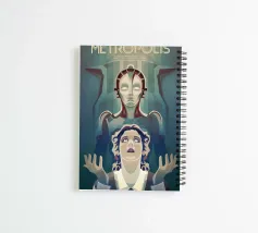 Metropolis poster, Fritz Lang classic, silent film illustration, retro-futurism, art deco wall art, vector illustration film classic, science fiction poster, cinema cult film art print, expressionist aesthetics, futuristic city vision, robot icon Maria, dystopian art, film history illustration, vintage film poster modern, iconic sci-fi motif, minimalist graphic, retro cinema poster, cult film artwork, Metropolis reinterpreted, poster for film fans, decorative wall art.
