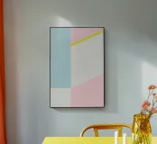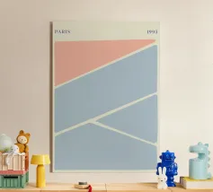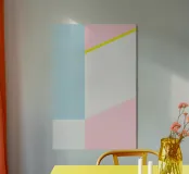 Questa stampa d'arte minimalista colpisce per i suoi tenui colori pastello e l'armonioso gioco di blu, rosa e bianco, accentuato da una stretta striscia gialla. Le chiare forme geometriche creano un'estetica calma e moderna, perfetta sia per uno spazio di lavoro creativo che per un accogliente salotto. Questo quadro dona una fresca leggerezza a qualsiasi ambiente ed è ideale per gli amanti dell'arte semplice ma espressiva.