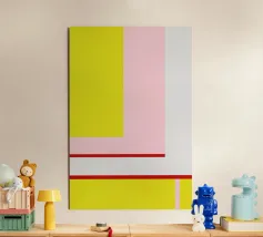Questa stampa d'arte moderna porterà la vostra casa ad un livello superiore grazie al suo design minimalista e ai suoi colori freschi! Le forme geometriche in giallo, rosa e accenti di rosso conferiscono alla vostra stanza un aspetto contemporaneo e fresco. Che si tratti di soggiorno, camera da letto o ufficio, questa stampa si abbina perfettamente a un arredamento elegante e trasmette vibrazioni positive. Fate risplendere le vostre pareti e mostrate il vostro stile unico!