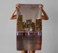 Die beleuchtete Skyline von Downtown Miami, Florida, USA | lo skyline illuminato di Downtown Miami, Florida, USA