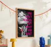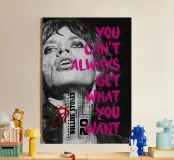 Poster di un dipinto originale in tecnica mista. Mick Jagger, The Rolling Stones, musica, band, citazione, musicista, rock star, leggenda, cantante, lingua, nero, rosa, Satisfaction