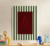 Un albero di Natale minimalista dal carattere festoso: sottili linee rosse su uno sfondo rosso intenso creano una silhouette moderna ed elegante. Questo disegno è perfetto per chi ama le decorazioni natalizie semplici, eleganti e artistiche. Combina calore e tranquillità - ideale per il soggiorno, il corridoio o come sottile dichiarazione stagionale sulla parete.