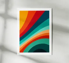 Questo poster dal design minimalista e retrò infonde vita al motivo astratto - attraverso un'interruzione, un taglio. Il poster incanala la nostalgia attraverso palette di colori e strisce retrò, pur mantenendo un tocco contemporaneo. Utilizza il minimalismo per distillare l'essenza del tema ed enfatizzare gli elementi principali in modo visivamente accattivante. Il risultato è un manifesto generato al computer che evoca un senso di fascino senza tempo e di moderna raffinatezza.