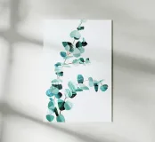 Un ramo di eucalipto fresco e pulito. Molto fermo e minimale su uno sfondo bianco, ma di classe.