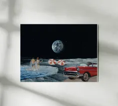 John si stava godendo la sua vacanza sulla luna, ma cominciava a chiedersi come sarebbe tornato a casa... Collage retrofuturistico di Taudalpoi.