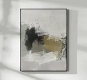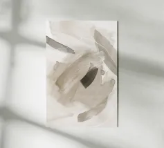 Moderna opera d'arte astratta con pennellate e texture grossolane nei morbidi toni della terra: beige, verde, ocra, grigio e nero. Questo quadro moderno nei toni della terra si adatta perfettamente a diversi stili abitativi, come new country, bohémien, industriale, moderno, essenziale e naturale. Arricchite i vostri interni con questa creazione versatile, che aggiunge espressione artistica al vostro spazio abitativo.
