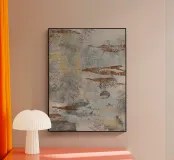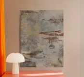 Una moderna pittura digitale astratta con texture e forme in toni morbidi come il marrone, il beige, il giallo, il blu e il grigio. Questa opera d'arte moderna si adatta a vari stili di interni, tra cui industriale, moderno, bohémien, essenziale e naturale. Con la sua varietà di forme, linee, pennellate e texture, il dipinto è un'opera d'arte unica che aggiunge carattere al vostro spazio. Questo quadro da parete è un regalo perfetto per chi ama la vita naturale.