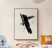 Moderna opera d'arte astratta con forme e linee organiche e pennellate nere che creano un'atmosfera calda nei vostri interni. L'opera d'arte ha uno sfondo beige che ha un aspetto senza tempo. Questa opera d'arte minimalista si adatta bene a uno stile di vita moderno, essenziale, bohémien e industriale. Se vi piace la semplicità e l'eleganza. Adatto a un soggiorno moderno, a una camera da letto, a un ingresso e a un ufficio.