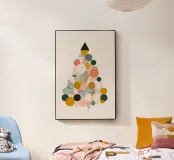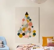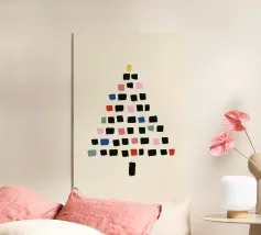 Un albero di Natale minimalista di ispirazione Bauhaus, composto da forme geometriche stratificate e texture punteggiate. La calda tavolozza di terracotta, senape, fard e verde bosco crea un'estetica raffinata ma giocosa. Questo pezzo contemporaneo dà un tocco moderno e artistico all'arredamento stagionale, perfetto per gli amanti del design e degli spazi creativi.