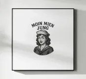 Un design marittimo ironico per chi vuole indossare "Moin mien Jung" con il sorriso sulle labbra. L'impertinente marinaio in stile streetwear vintage è perfetto per gli amanti della costa, dell'aurora boreale e per tutti coloro che vogliono il fascino del porto sulla loro camicia o felpa con cappuccio.