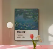Il famoso dipinto di Monet Ninfee reimmaginato come un'elegante cartella colori Pantone.