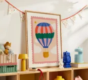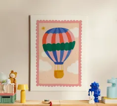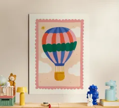Morbida, sognante e ricca di avventura, questa affascinante stampa con mongolfiere aggiunge un delicato tocco di colore alla cameretta di ogni bambino. La grande mongolfiera fluttua pacificamente tra soffici nuvole bianche, caratterizzata da vivaci strisce verticali color corallo, rosa cipria e blu intenso, con una vistosa fascia verde bosco al centro. Perfetta per camerette, camere da letto per bambini o angoli lettura stravaganti, questa stampa dona alle vostre pareti un tocco di fantasia e calma avventura. Un'opera adorabile per piccoli esploratori e sognatori pronti a spiccare il volo.