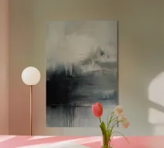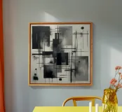 Arte astratta monocromatica - Suite di 2 pezzi intitolata Caos e Struttura - questo è il pezzo 2 di 2. L'opera gioca con i contrasti - luce e buio, movimento e immobilità, precisione e spontaneità - suscitando un senso di tensione e intensità controllata. La tavolozza in scala di grigi ne amplifica l'atmosfera moderna e industriale, pur lasciando spazio all'interpretazione personale.