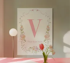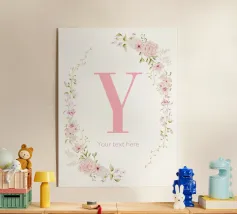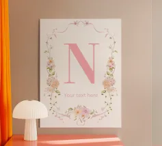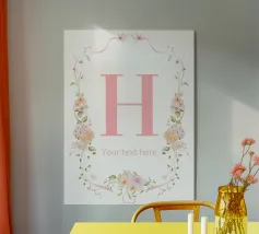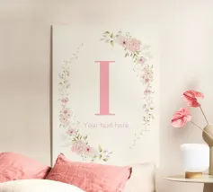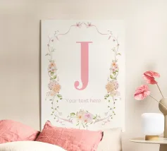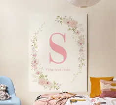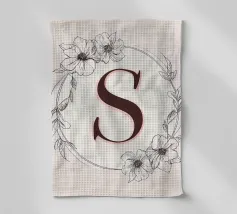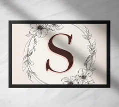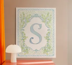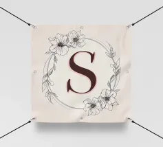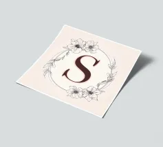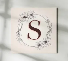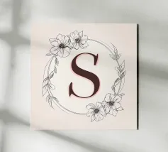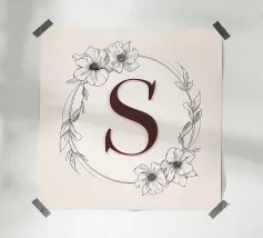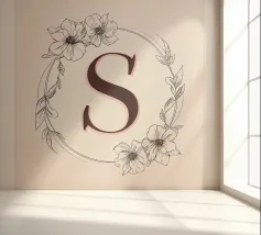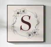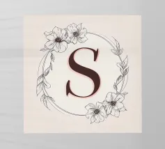 Questo elegante monogramma floreale presenta una delicata corona di fiori e foglie che circonda la lettera "S". La palette di colori pastello e i dettagli intricati creano un design romantico e senza tempo, perfetto per qualsiasi arredamento.