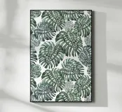 Questo vivace disegno ad acquerello presenta una varietà di foglie di monstera in morbide tonalità di verde, disposte in forme armoniose e fluide. Le morbide sfumature di colore e le linee organiche conferiscono al disegno un'atmosfera naturale e rilassata. Perfetto per chi vuole portare in casa il fascino tropicale della monstera in un disegno moderno ed elegante.