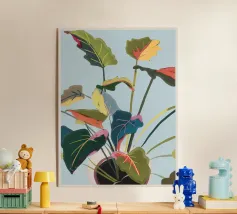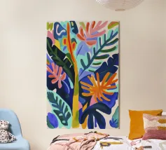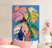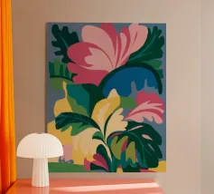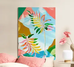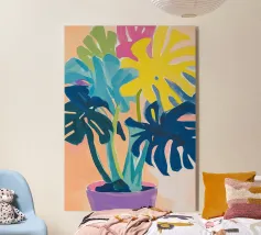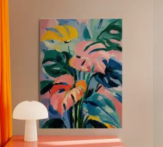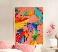 Un'audace e colorata rivisitazione della classica foglia di monstera. Piena di movimento, energia e vibrazioni tropicali... questa è tutta gioia e colore.
