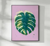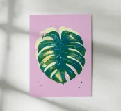 Dai più colore alla tua vita! Foglia di Monstera su sfondo rosa per tutti coloro che amano le piante e i colori della giungla. Illustrazione fatta a mano con amore e dedizione.