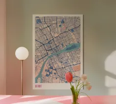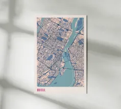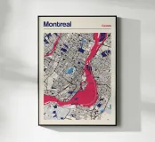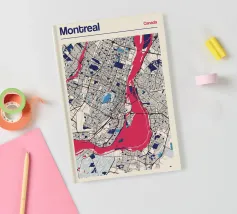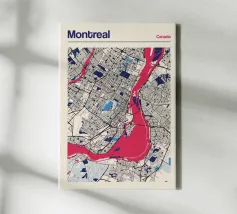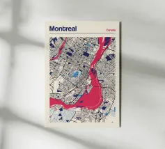 Experience the charming atmosphere of Montreal with this detailed map artwork! The intricate street networks and the striking St. Lawrence River are depicted in vibrant colours and a clear design. Perfect for fans of the Canadian metropolis or as a stylish wall piece that brings urban charm and modern aesthetics to any room.