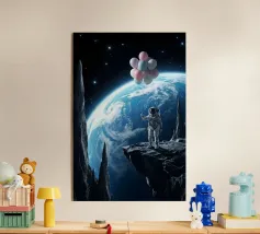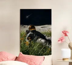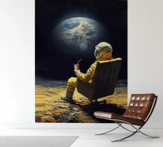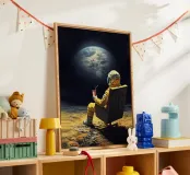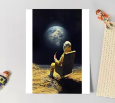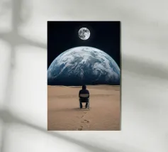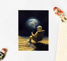 "In un'altra opera della serie "My Space", troviamo il nostro protagonista che si gode una giornata di relax contemplando la magnifica bellezza della Luna da una posizione privilegiata nello spazio. Con un tocco giocoso e surreale, questa opera invita gli appassionati di fantascienza a immergersi in un mondo di immaginazione e meraviglia. La scena cattura la sensazione di serenità e stupore che si prova osservando il cosmo, offrendo un'emozionante fuga tra le stelle e oltre".