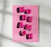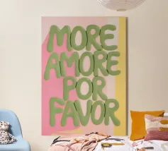 Descrizione del prodotto: Questo design giocoso combina due approcci stilistici per creare un look unico. La doppia scritta "More Amor" combina l'affascinante stile a palloncino in rosa acceso con l'elegante e fluente carattere corsivo in bianco classico. Il carattere plastico a palloncino conferisce al design un tocco allegro e di tendenza, mentre il carattere corsivo crea un'estetica romantica e senza tempo. La combinazione di giocosa leggerezza e raffinata eleganza rende questo disegno un vero e proprio richiamo visivo.