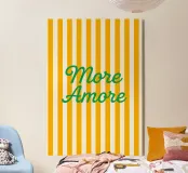 Parole semplici e calde che parlano al cuore: More Amore - "Più amore". Una frase classica dal fascino senza tempo, perfetta per camere da letto, spazi abitativi o angoli accoglienti che celebrano l'amore, la morbidezza e il romanticismo quotidiano.