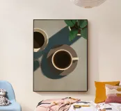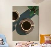 Una natura morta minimalista che cattura due tazze da caffè disposte in un tranquillo equilibrio, definito da forme pulite, texture morbide e ombre nitide. La tavolozza di colori tenui e la forte composizione geometrica evocano la calma, la concentrazione e il tranquillo rituale di un mattino lento. Sottile e moderna, quest'opera d'arte dona calore e struttura agli interni contemporanei, scandinavi o minimalisti.