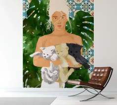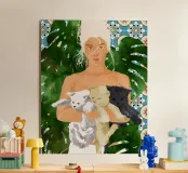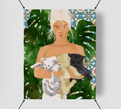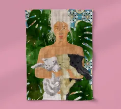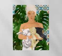 Marocco Vacay gatti gatto animali domestici acquerello marocco ritratto posa donna persone monstera piastrelle