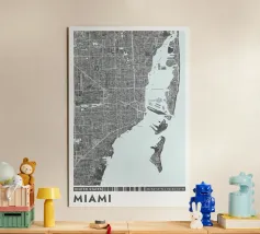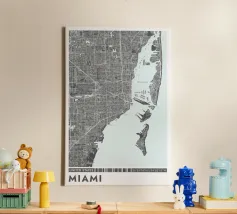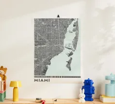 La città di Miami in una splendida mappa a colori. Questa mappa dettagliata della città di Miami, suddivisa in vari schemi di colore, è un perfetto murale per la casa o l'ufficio.