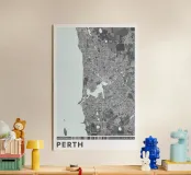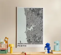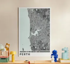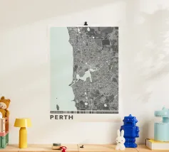 La città di Perth in una splendida mappa a colori. Questa mappa dettagliata della città di Perth, suddivisa in vari schemi di colore, è un perfetto murale per la casa o l'ufficio.