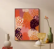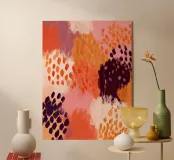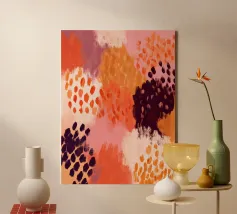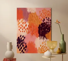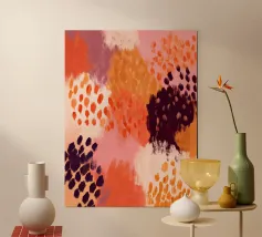 An energetic yet grounded abstract painting with expressive marks and warm tones. This artwork brings movement, texture, and a lively boho spirit into modern interiors.
