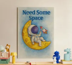 Un affascinante disegno di astronauta con la scritta "Need Some Space" - umoristico, giocoso e perfetto per gli appassionati di spazio. Il piccolo astronauta sulla luna con un razzo simboleggia la libertà, i sogni e la sete di avventura. Questo poster spaziale combina l'arte dei cartoni animati, l'illustrazione delle galassie e il design cosmico con la cultura pop moderna. Ideale per decorare la stanza dei bambini, le pareti dell'ufficio o come idea regalo. Popolare come Astronaut Wall Art, Outer Space Print, Funny Space Poster, Rocket Illustration, Moon Art Print, Science Fiction Art, Cosmic Wall Decor, Galaxy Theme Art, Minimal Space Design, Regalo per gli amanti dell'astronautica