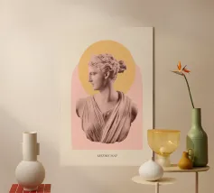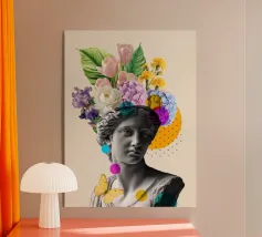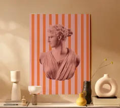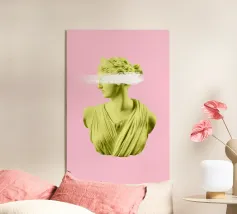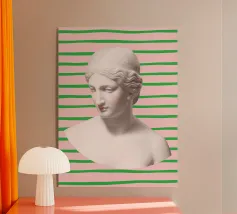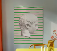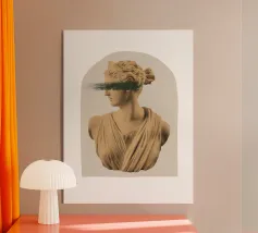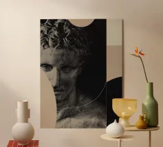 Un volto stilizzato ispirato ai busti antichi, attraversato da circuiti luminosi. Il passato incontra la tecnologia.