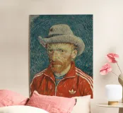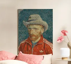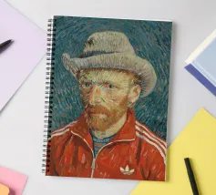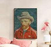 The tormented genius of Post-Impressionism becomes an involuntary ambassador of contemporary marketing. Van Gogh now poses in an urban tracksuit, fusing the intensity of his brushstrokes with the urban aesthetic of street culture.