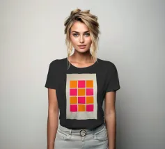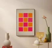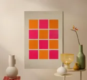 Dieses moderne Rasterkunstwerk spielt mit Wiederholung, Rhythmus und Farbkraft: Neun Quadrate in leuchtendem Pink und Orange bilden ein geometrisches Farbgedicht. Die Komposition wirkt klar und gleichzeitig lebendig – ideal für moderne Interiors, kreative Studios oder Galeriewände mit Pop-Art-Attitüde. Ein Statement für Farbe, Form und Ordnung mit Energie.