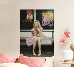 "New Marilyn" è un affascinante viaggio attraverso le immagini più iconiche della cultura popolare che circondano la figura di Marilyn Monroe, raccolte in questo accattivante collage digitale. Ispirato alla pop art di Warhol, questo pezzo fonde elementi vibranti per creare un'immagine alternativa di questa celebrità più grande della vita".