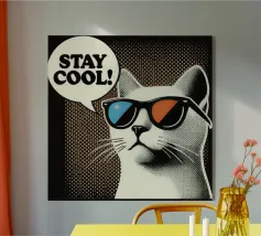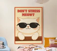 Un gatto dei cartoni animati con occhiali da sole se ne sta tranquillo con la frase "NICE BUM!" scritta sopra. L'illustrazione giocosa cattura un'atmosfera umoristica e rilassata.