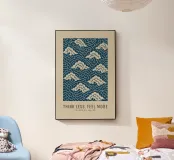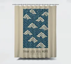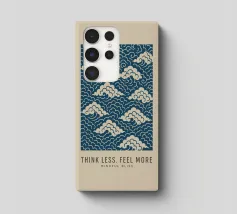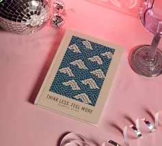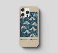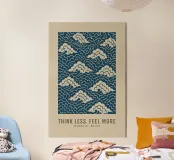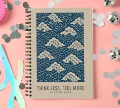 Questo poster della serie Mindful Bliss combina un motivo di nuvole di ispirazione giapponese con un tranquillo blu notte e la frase mentale "Think Less. Feel More". Il linguaggio organico del design e l'effetto profondo dei colori creano una sensazione di spazio, chiarezza e ritiro, ideale per chiunque voglia visualizzare la calma.